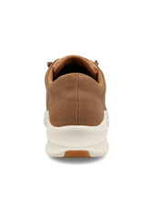 Elastic laces with barrel knot. Also features elastic gore panels on the tongue that allow the shoe to be worn without laces.